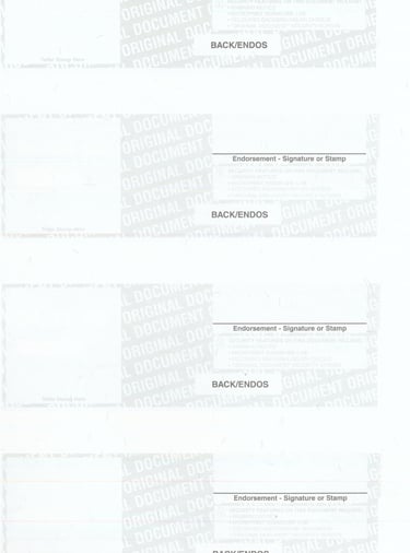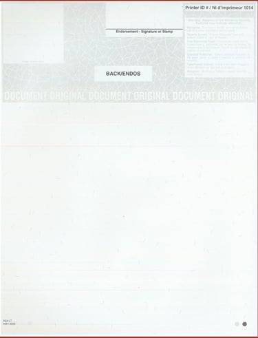 We use a premium quality cheque paper that won't jam in your printer like thin, cheap cheque paper will. Blank