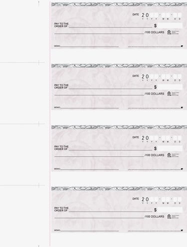 4 security features can be added to your laser cheques, too. We guarantee that they will be compatible with QuickBooks and Simple Accounting software programs, among others.